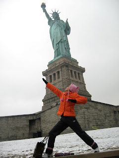 Well, if it didn't snowed during the night, and is sleeting lightly when I looked out the window. The temperature can change 20 degrees from one day to the next. We ate a light breakfast and took the subway to Battery Park, to board the boat to see the Lady. There was a light dusting of snow thru Battery Park, about a couple of inches stuck all over, and we were amazed how the city looks partially 'white'. There was no line, but still took a little bit to get thru security. There were several groups of middle and high school students on field trips to the island. We rode Miss Liberty, and the statue looked beautiful, partly in cloud, and mist/rain. After a hot drink at the cafe, we went to Ellis Island. I could just imagine how the immigrants felt coming thru in the early 20th century. It was cold and rainy all day. We had a fabulous Taiwanese lunch at Bian Dang, which is at the food court right across the street from the hotel. Bian Dang, actually means lunch, in Chinese (便當). We ate it watching TV. Of course afterward, Kurtis did not want to go out, as it was still raining/sleeting/hailing/snowing. I made him get dressed and took the subway to see Columbia University. The rest of the evening was packing and eating left over food. I also found a great store, Jacks World @ 111 West 32nd Street between 6th & 7th Ave. Considering everything is so expensive in NYC, Jack's was GREAT !!!! Too bad Kurtis didn't see it, he wanted to take the subway all the way back, instead of walking a few blocks, I got off on Penn Station & 34th, while he took the Orange line back to the hotel. It is now thundering, and hailing and snowing.